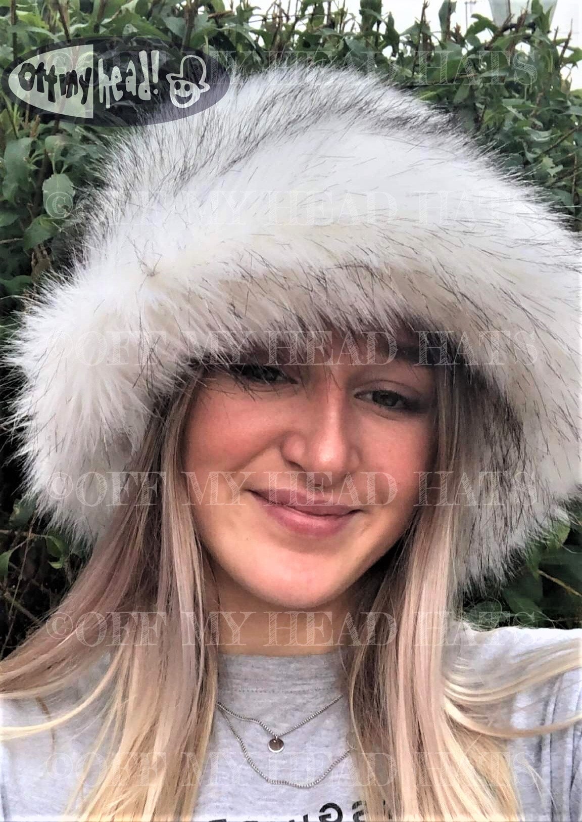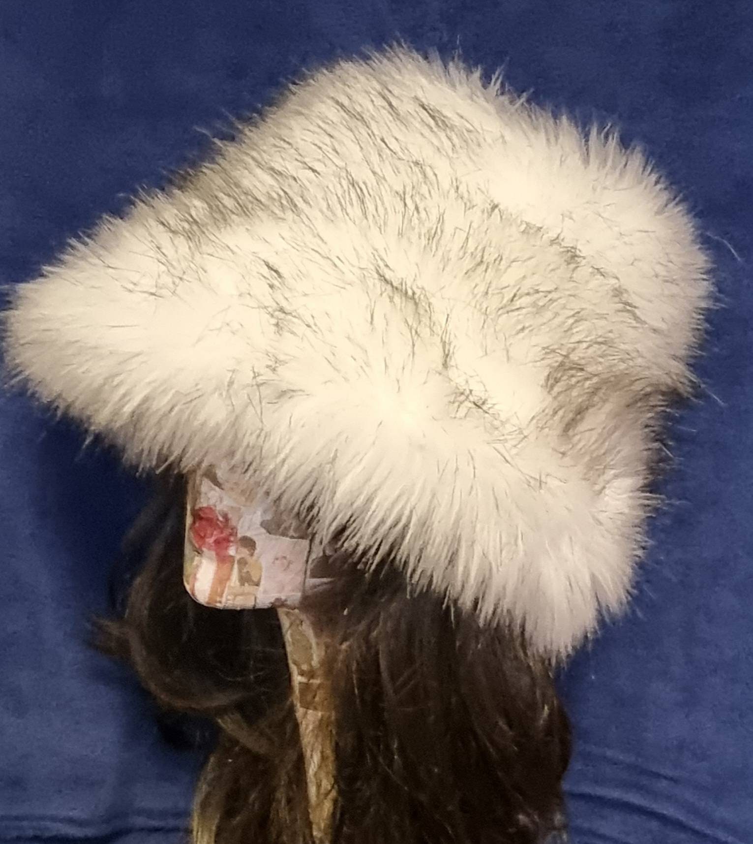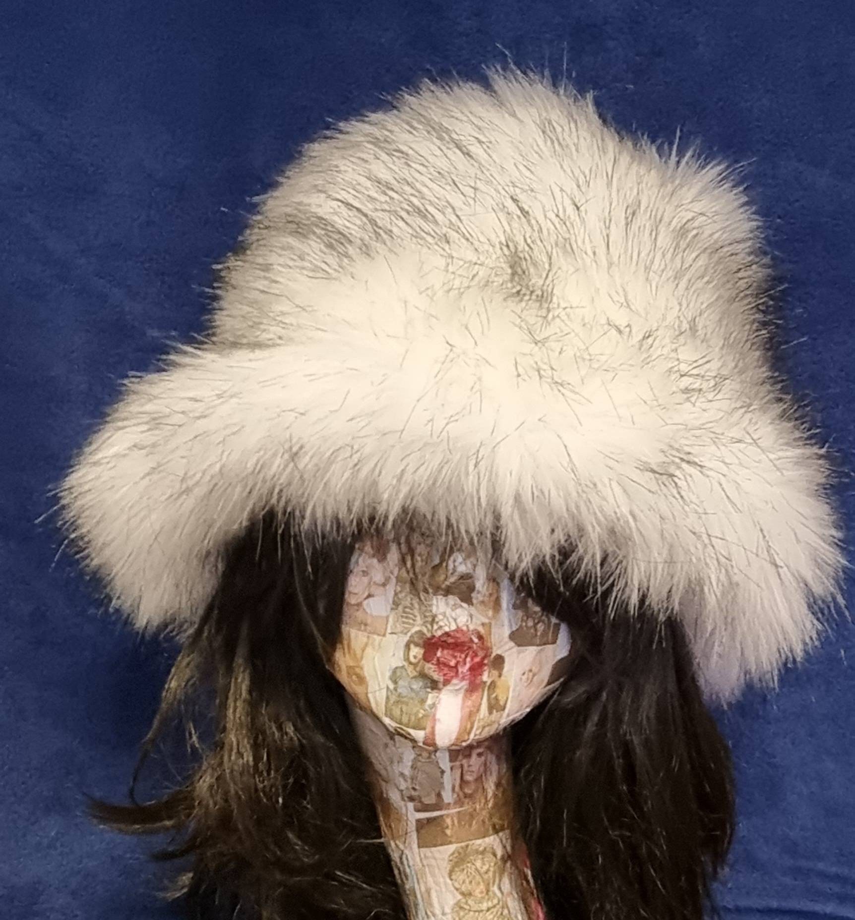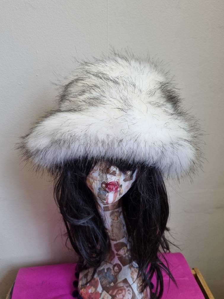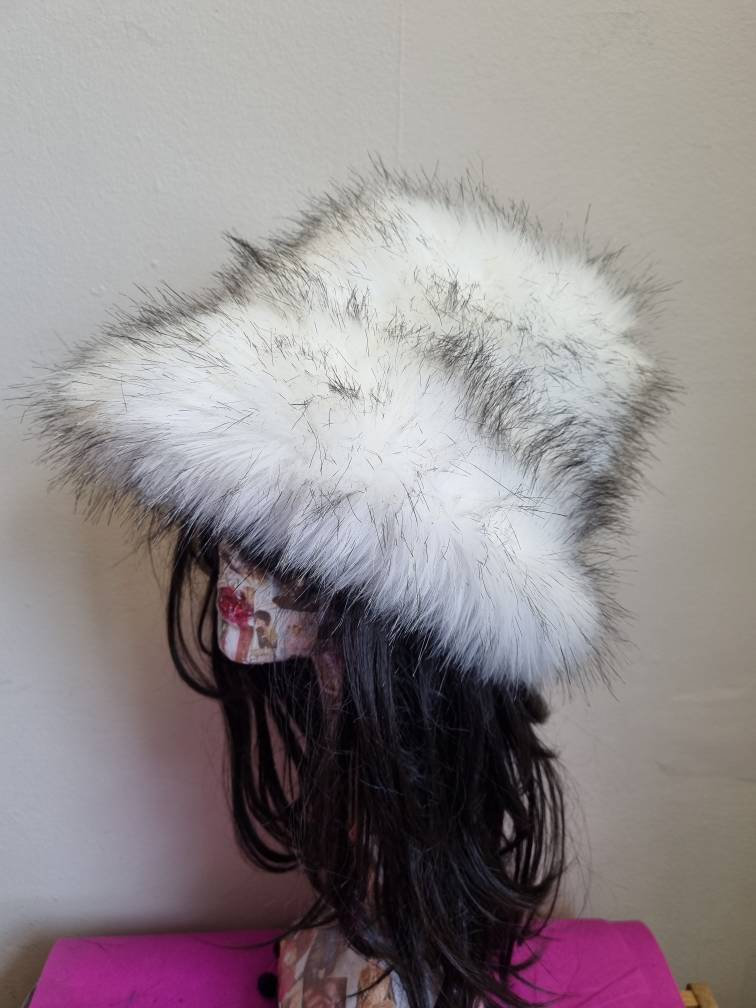 A real statement piece! A beautiful soft faux fur in white with black highlights.