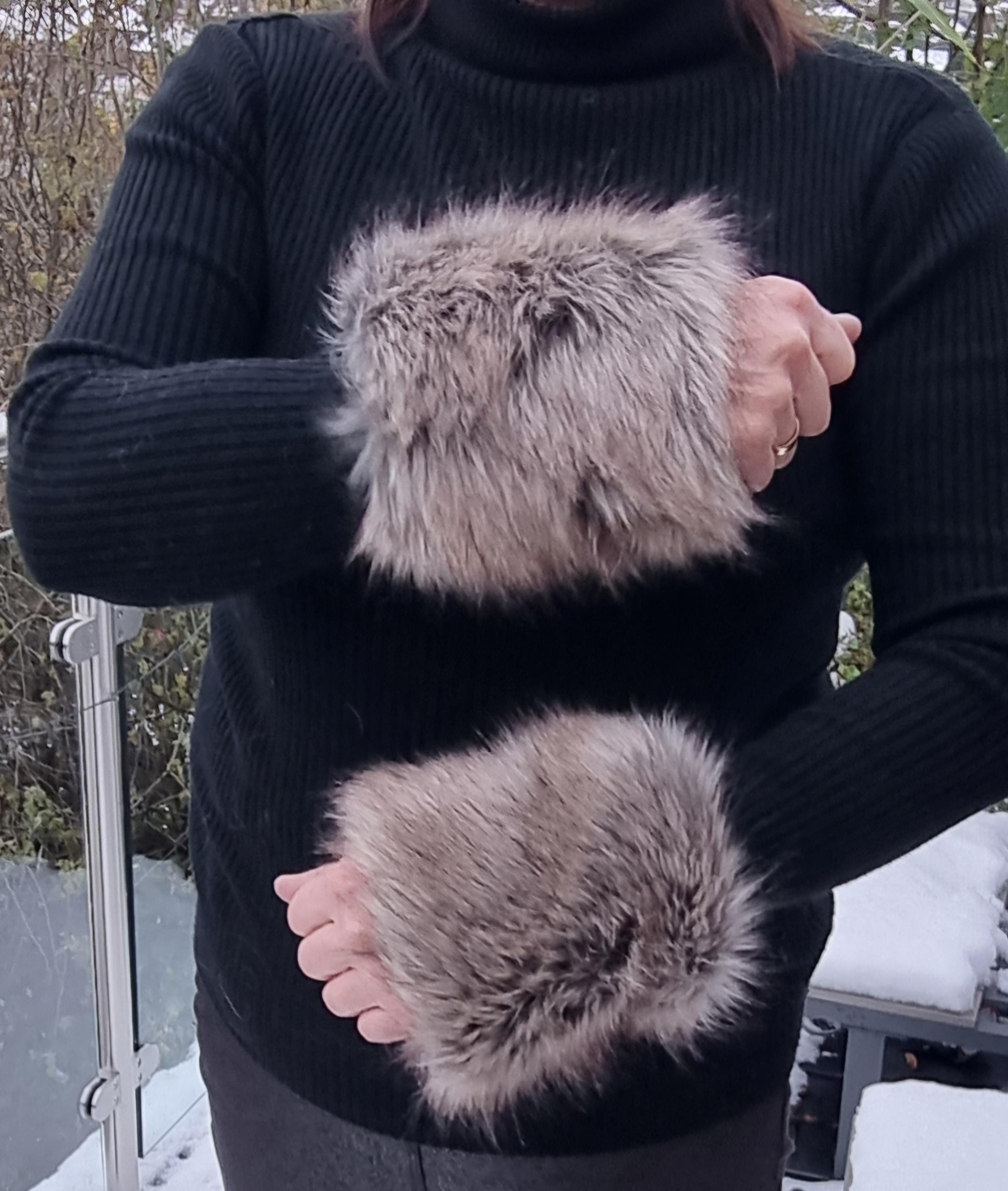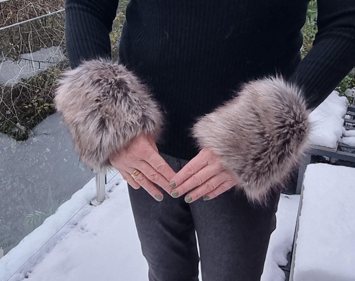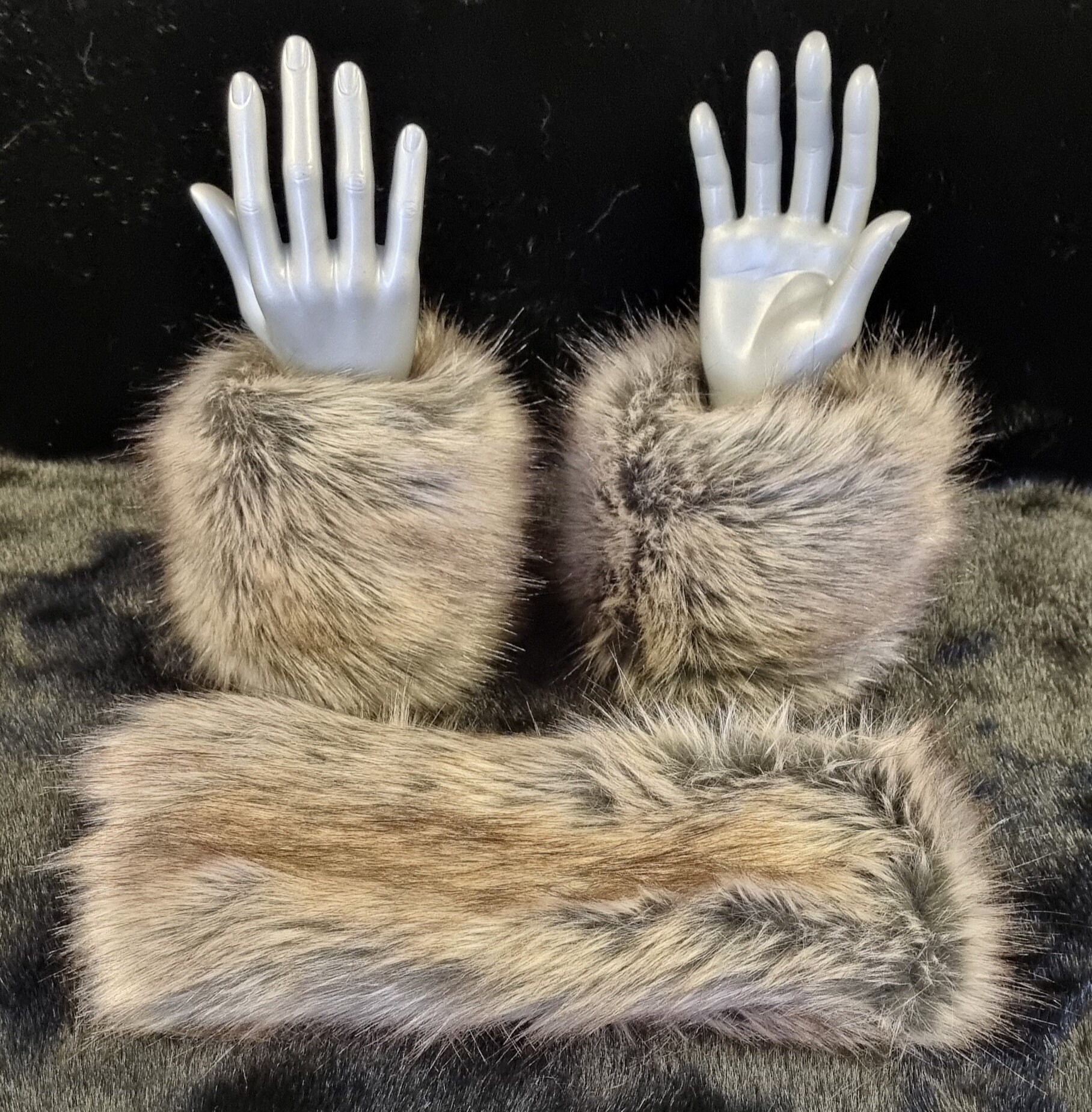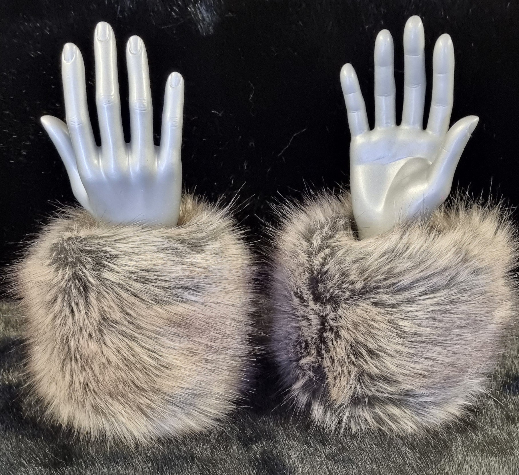 *A lovely pair of cuffs in muted browns and grey, faux fur cuffs.