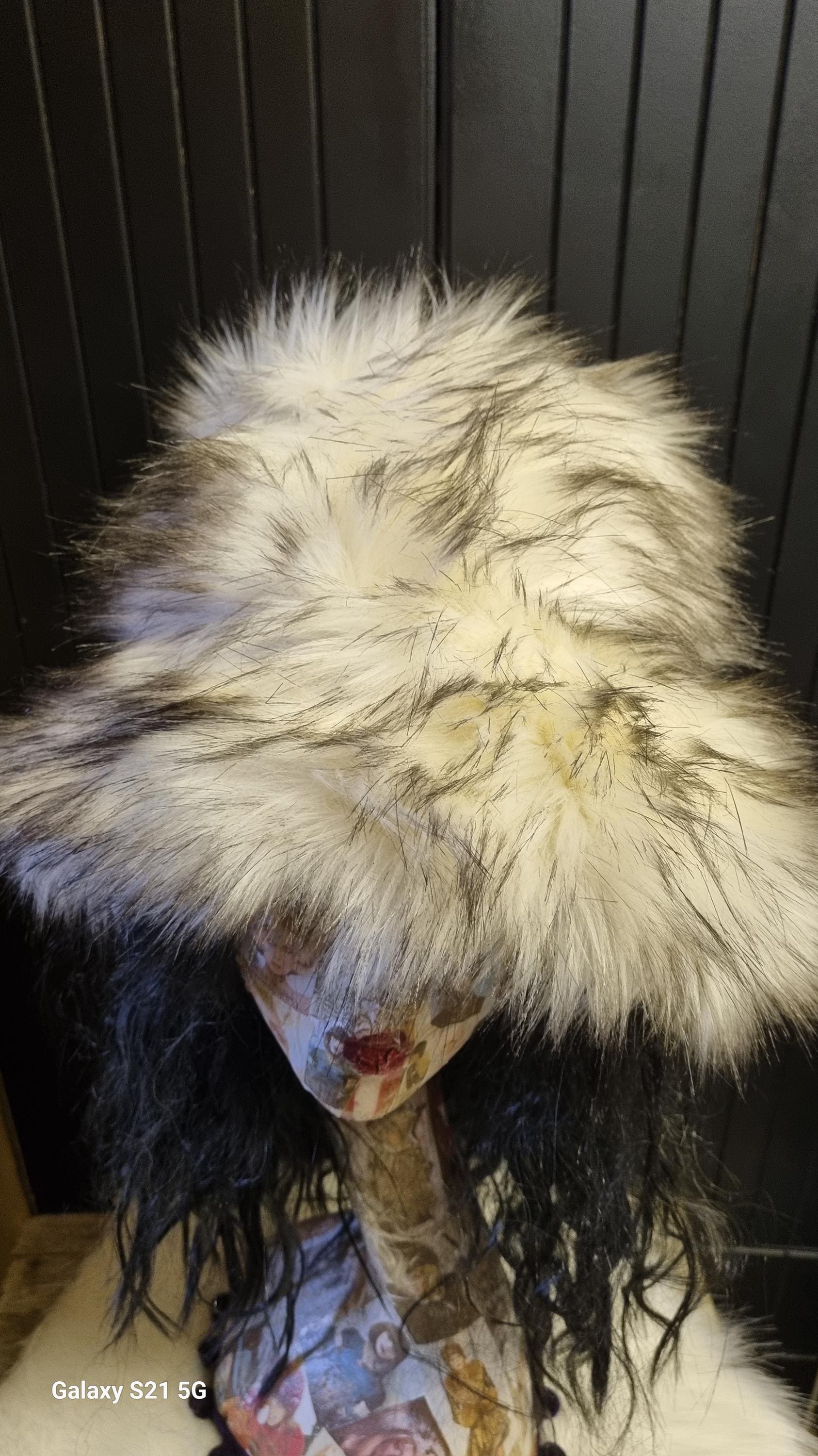 I ordered this hat bc in the photo, its mainly white. In person, it has much more black. It does not look like the photo. I even put my hand inside the hat n rotated it like pizza dough. I shook it out. I swished the hair around to give it the messy look n it immediately went black flat which exposes extra black. I sent the photos to the seller and was told its the exact hat from stock photo which I believe is a lie. Impossible. And I am being held responsible to pay for return shipping even though the item isn't as advertised. I now have to wait and open a case with etsy.