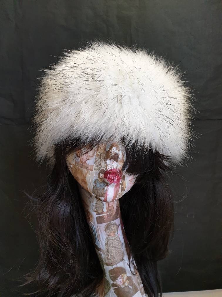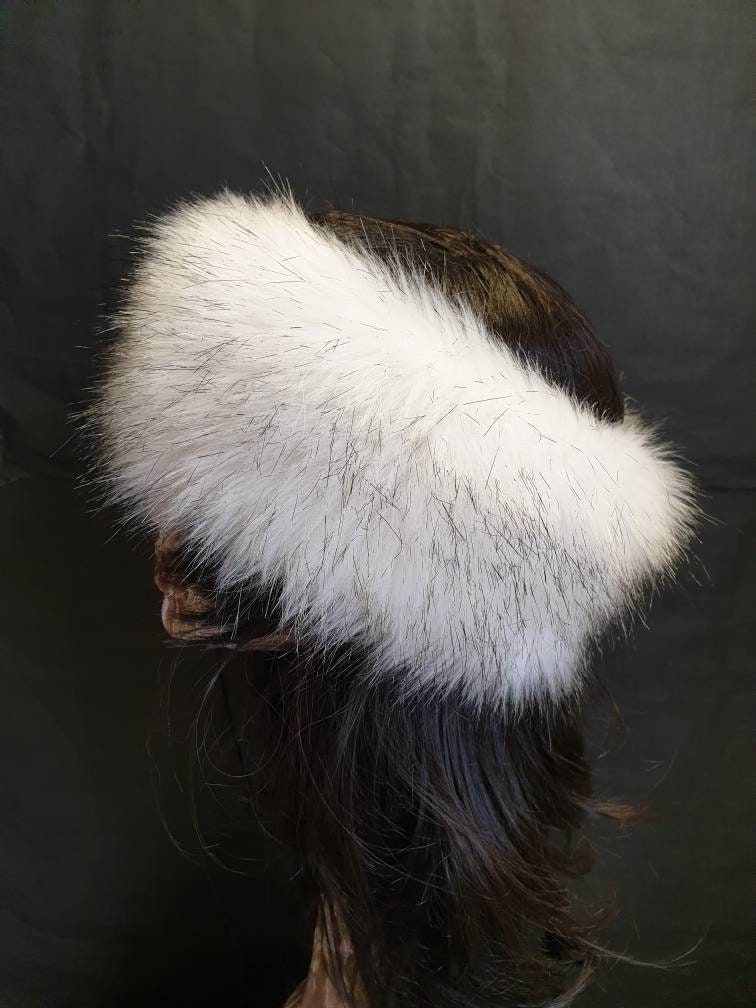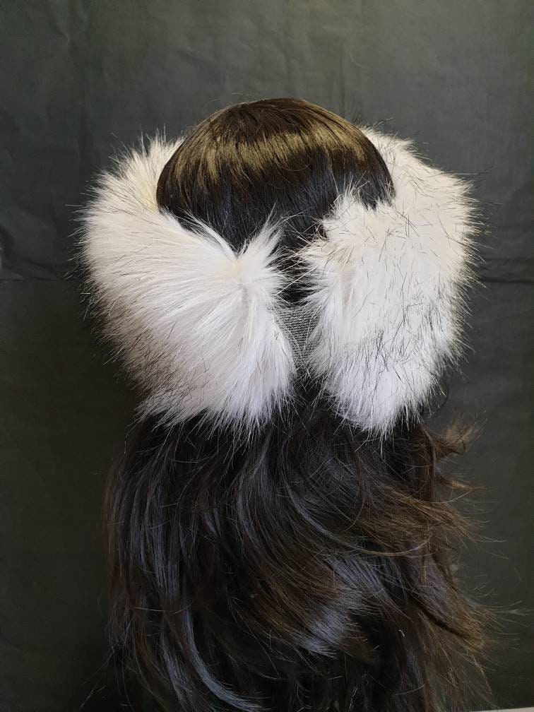 ♥ White with Black Tips Luxury Faux Fur Headband. Polar fleece lined so not itchy!