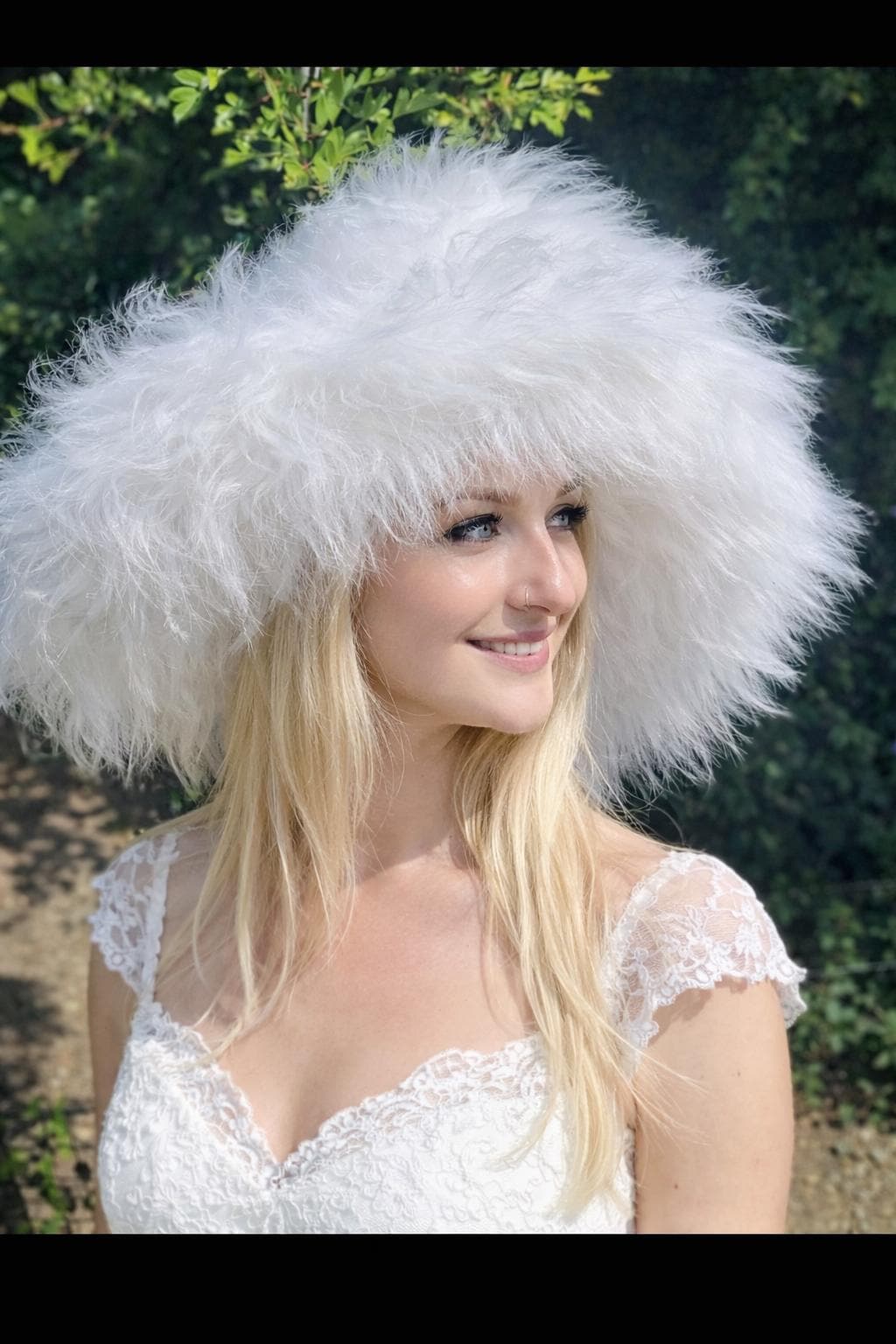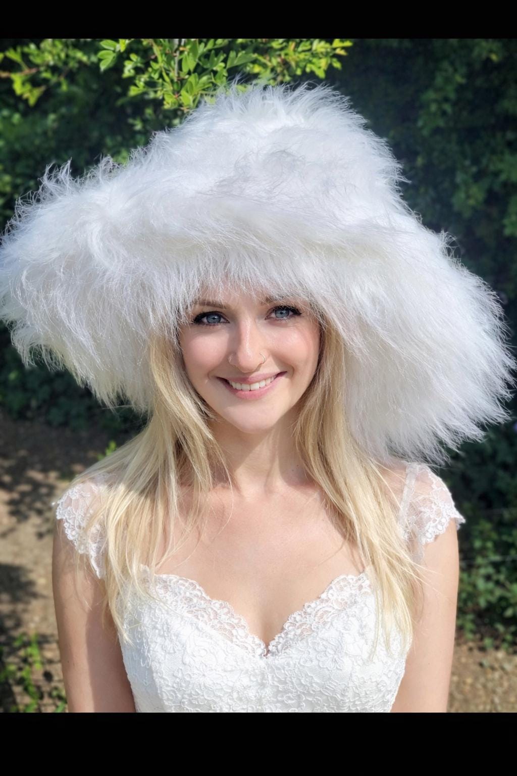 ❤️The brim is just over 7 inches wide, but does look wider as the fabric is very fluffy, and the pile is approx 2 inches long.