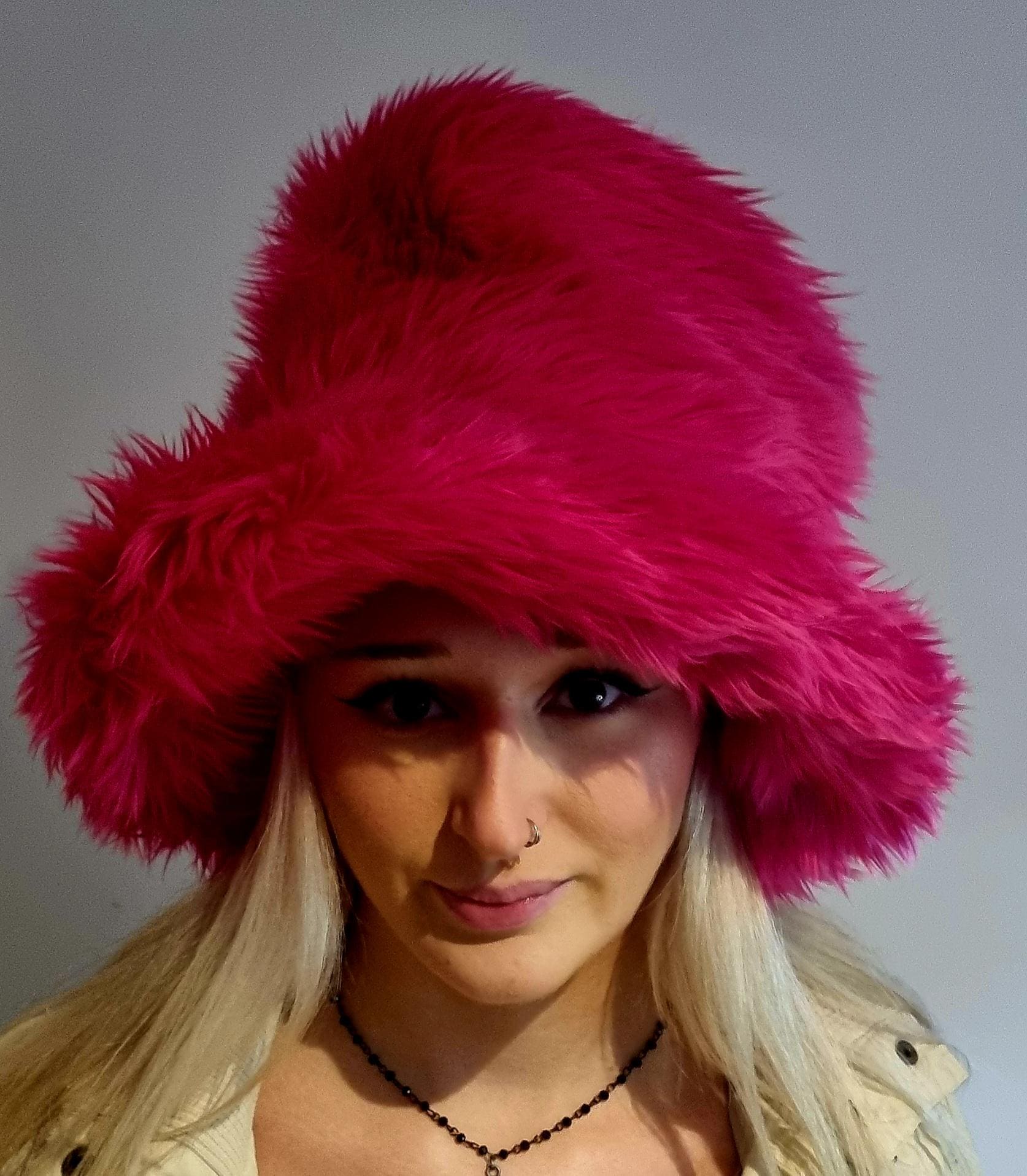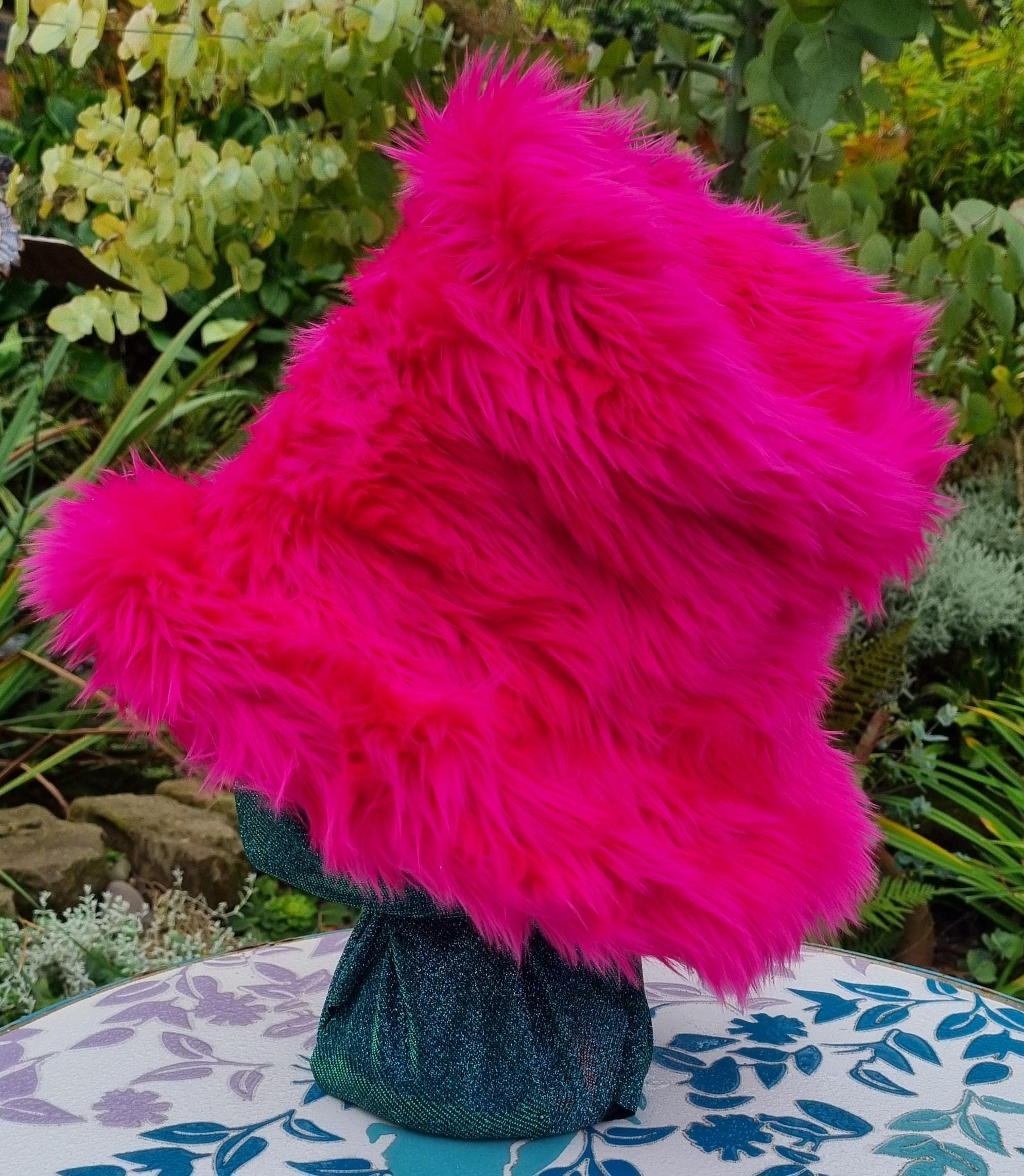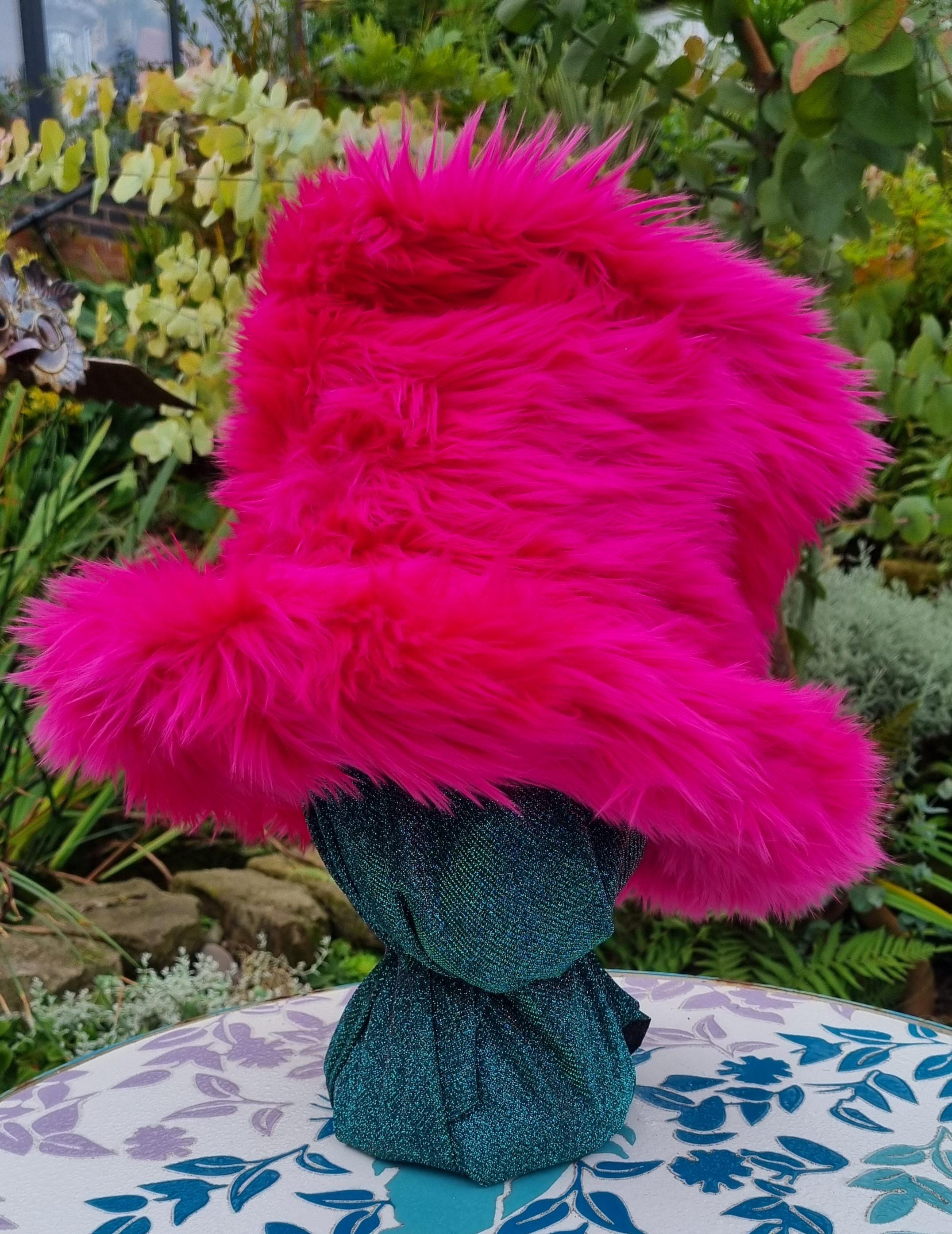 Tall fake fur hot pink Top Hat Style.