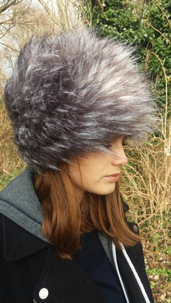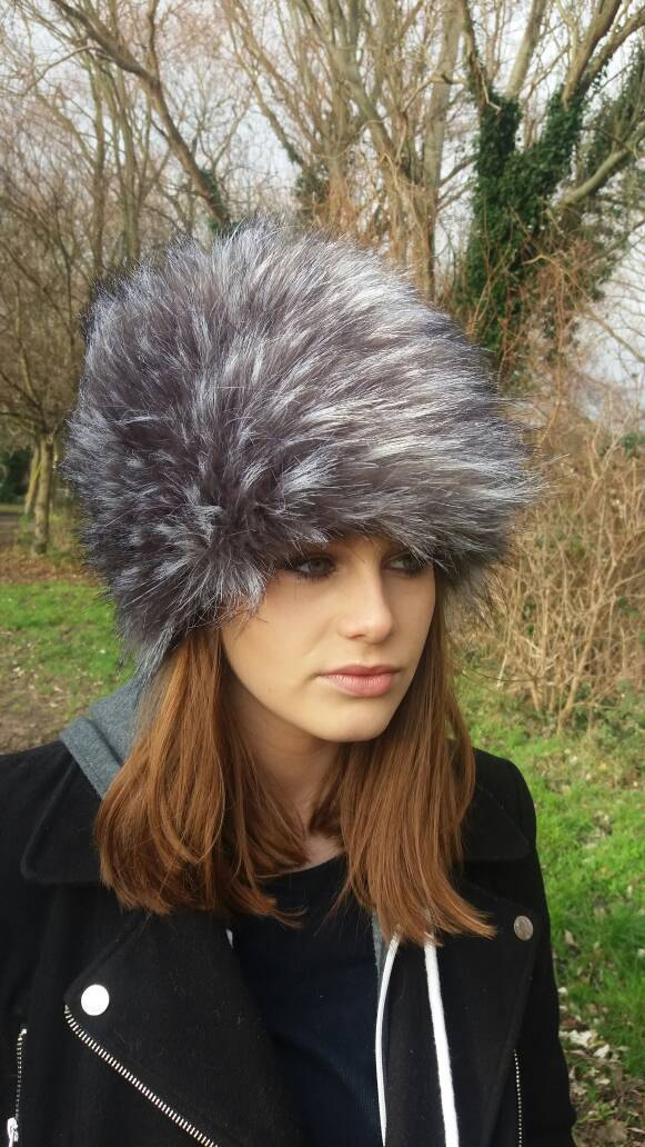 Silver and grey long faux fur hat. Pile is approx 2 inches long.