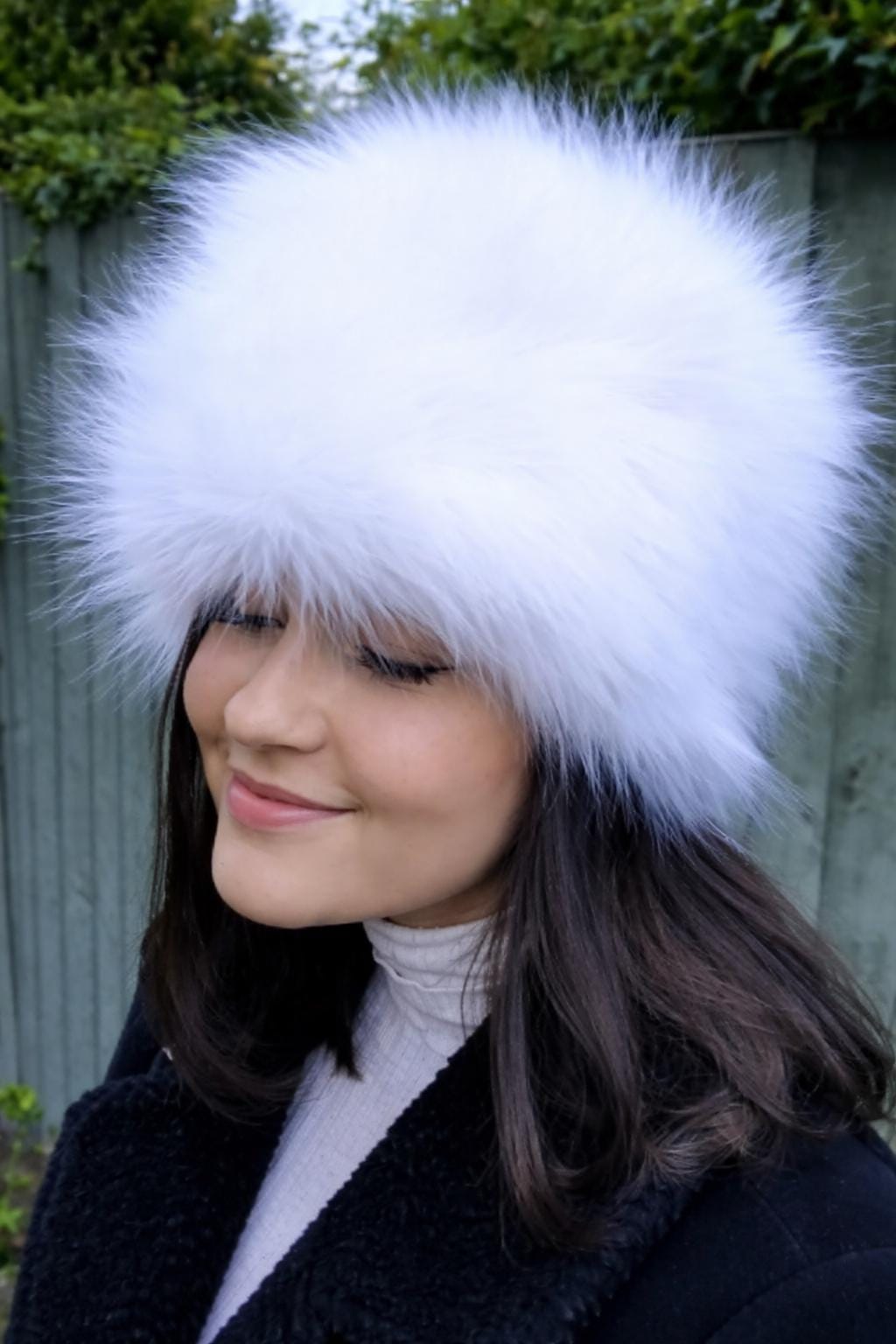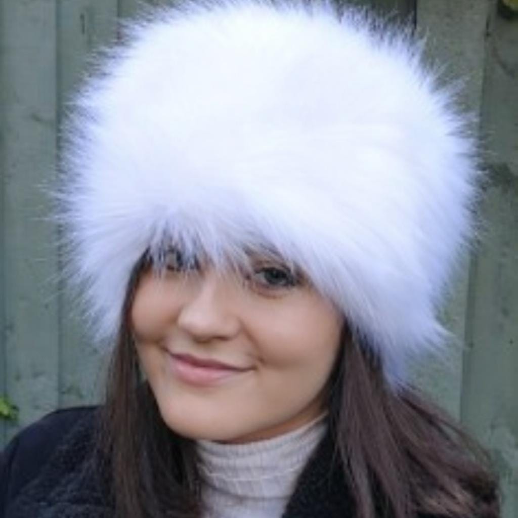 Stay cosy and stylish with my handmade white faux fur hat which has a warm polar fleece lining.