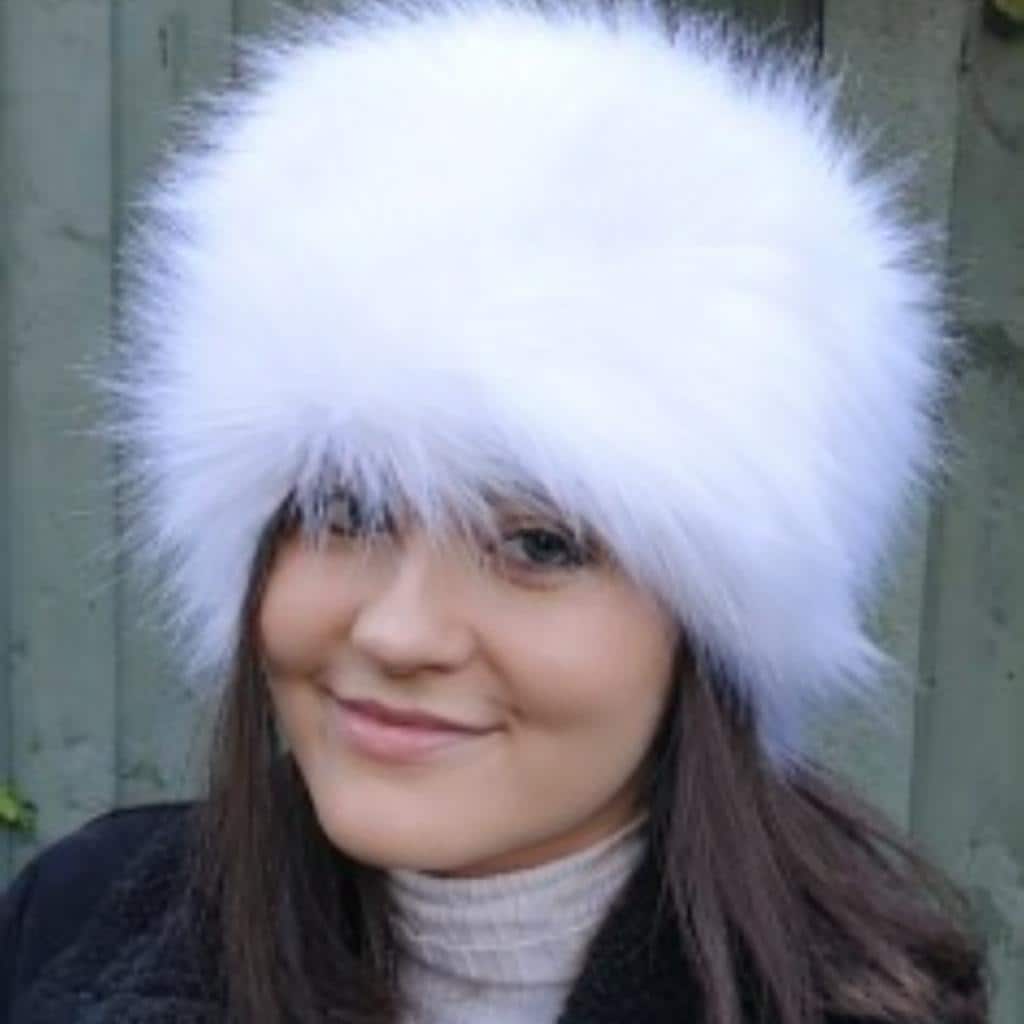 Stay cosy and stylish with my handmade white faux fur hat which has a warm polar fleece lining.