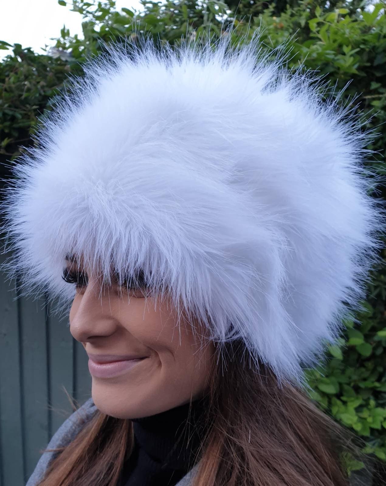 Luxurious white faux fur hat, handmade in the UK. Designed to keep you warm while making a bold statement.